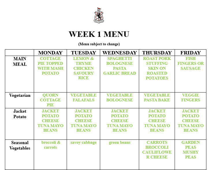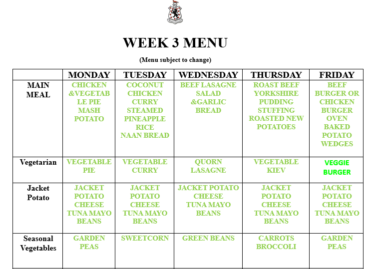 Menus are on a three week rolling programme.