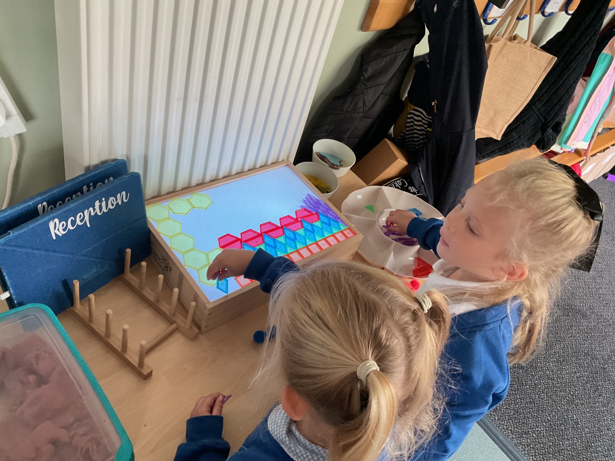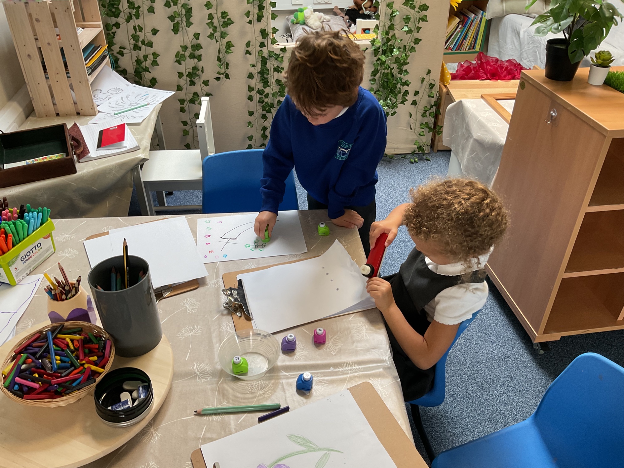 Wide-ranging opportunities in both the indoor and outdoor environments will enable children to develop their communication and language skills: talking to others in one-to-one and group situations, asking questions, reciting rhymes and expanding vocabulary. At all times, children will be encouraged to speak in sentences rather than phrases. Children will continue using the Tales Toolkits resources introduced in nursery to develop story telling and have now been introduced to Drawing Club to dive deep into their imaginations.