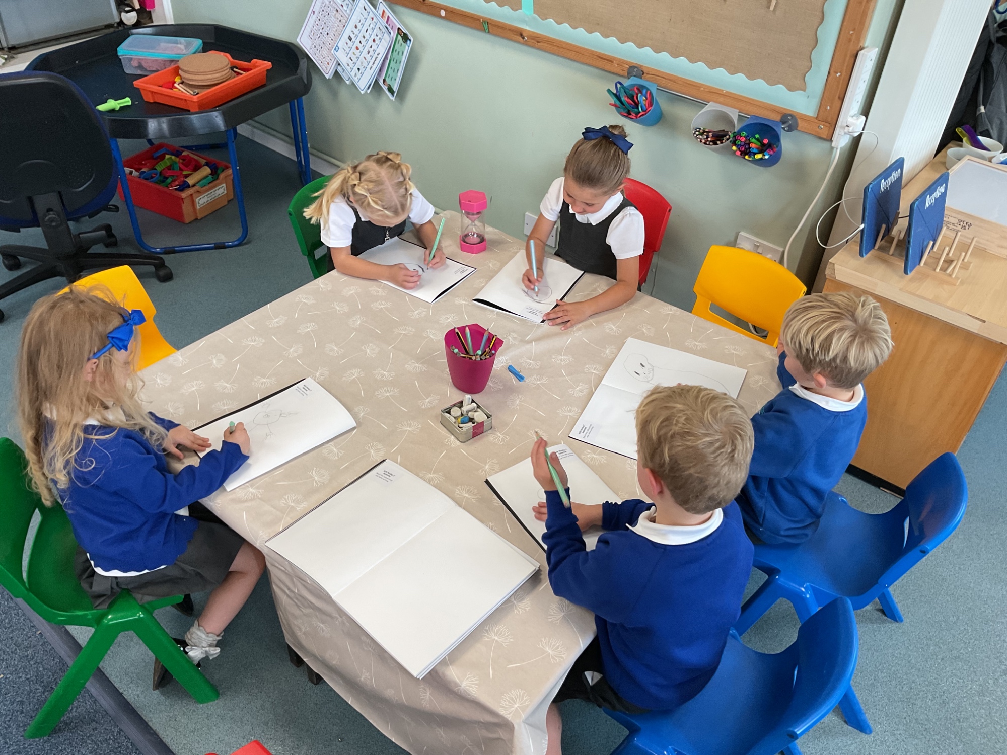 We have daily fine motor sessions and activities in provision to help strengthen our muscles for writing. Writing and mark making is encouraged in all areas of the classroom so that the writing becomes meaningful and purposeful for children. We will support children to establish comfortable, strong pencil grips and pencil control as they begin to form letters and make meaningful marks. Please use the phonics posts on Seesaw to review correct letter formation and discourage children from writing the letters incorrectly even if they are recognisable - it is much harder to un-teach skills than to teach them. Writing 1correctly1 will ensure children can write at pace and that they are ready to join in later years. It also helps to distinguish similar letters such as b,d,p and q.